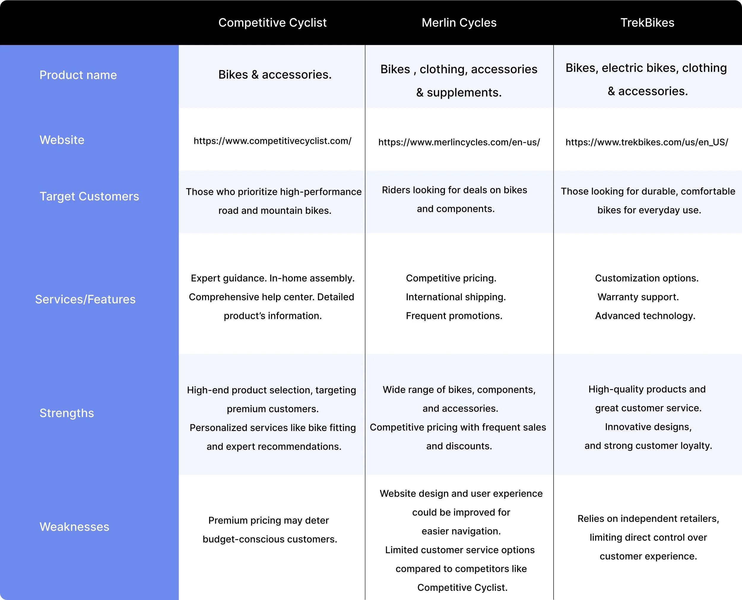 Conducted a competitive analysis to understand the bike industry and identify key competitors.